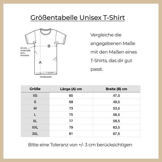 Wenn du T-Shirts nicht sehr weit magst, empfehlen wir, eine Numme kleiner als üblich zu nehmen!