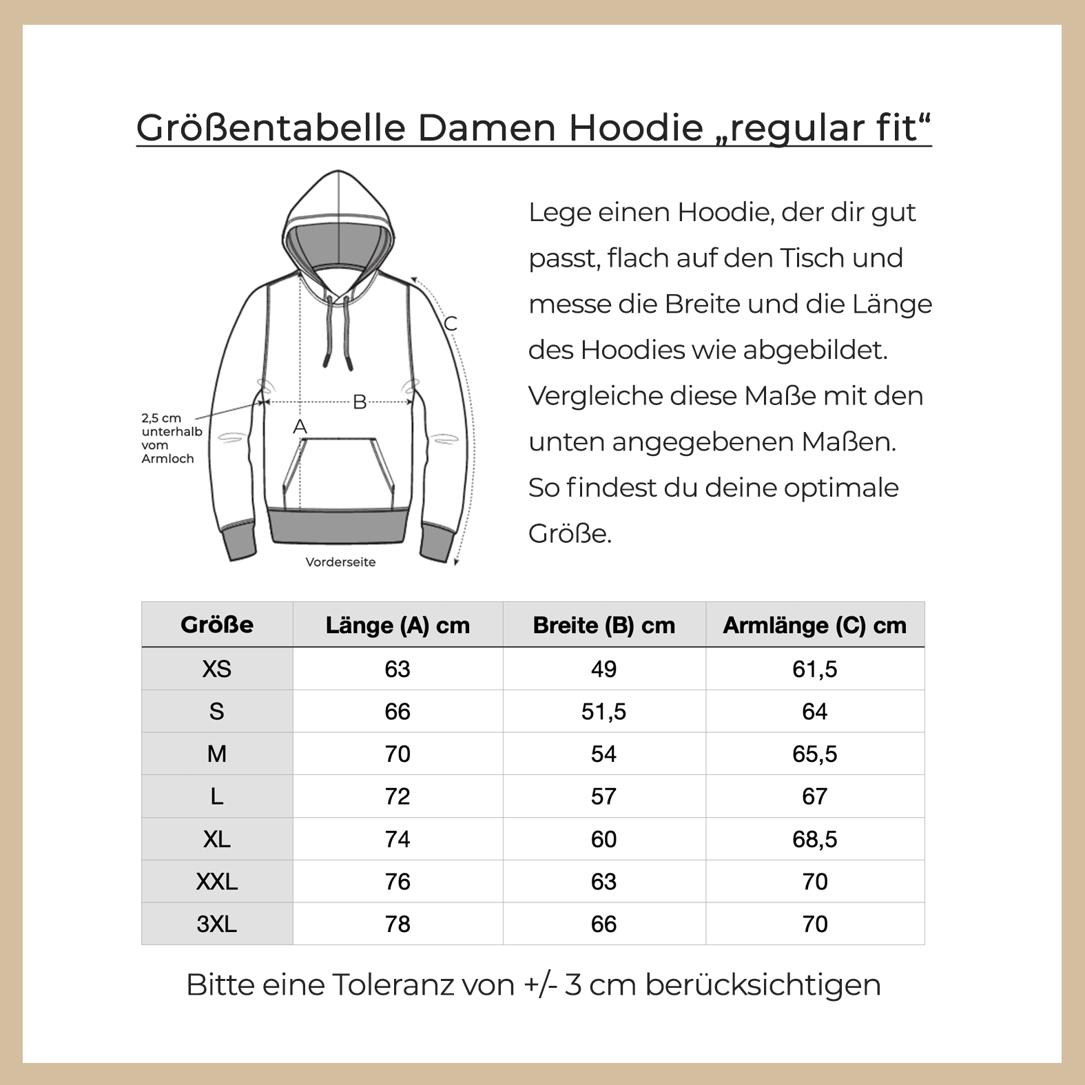 Für eine normale Passform kannst du deine übliche Größe wählen. Trägst du Hoodies lieber lockerer, dann wähle 1 Nummer größer.
