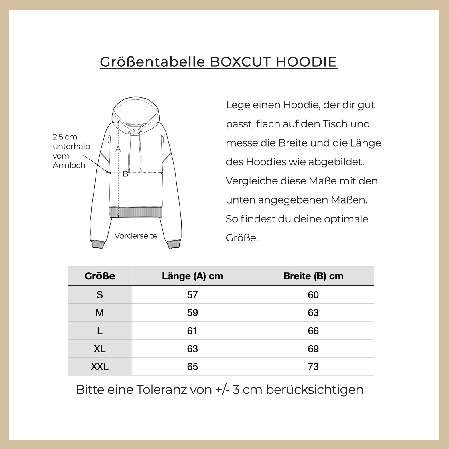 Der Boxcut Hoodie ist kürzer geschnitten! Siehe Maßangabe in der Größentabelle.